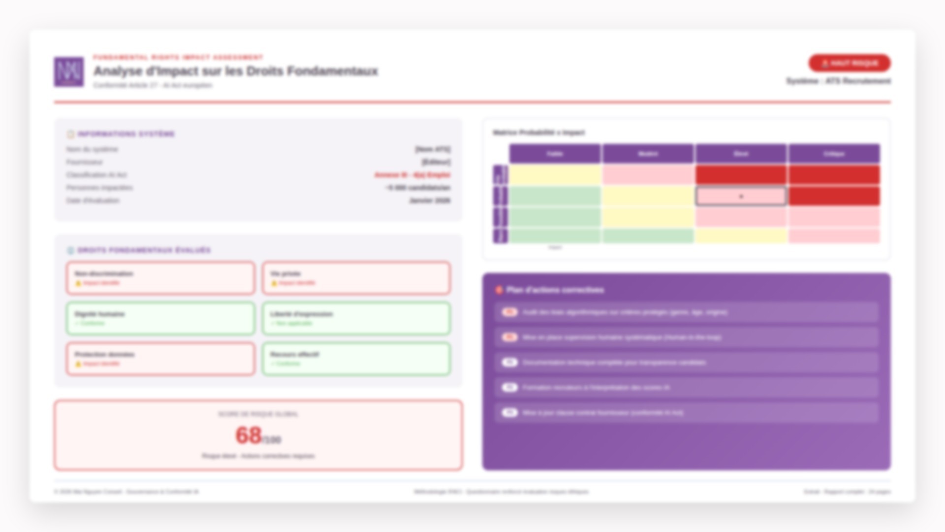 Vos processus automatisés sont-ils fiables, équitables et documentés ? Audit fonctionnel et identification des biais. Exemple de livrables : Rapport FRIA, Analyse des biais, Plan de remédiation, Document technique